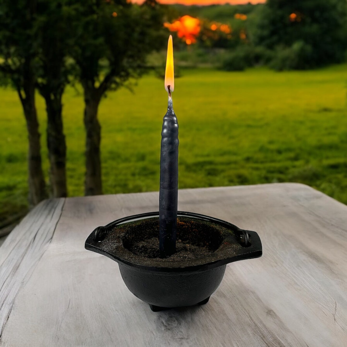 • Be sure to place it on a safe, fire-resistant surface. Such as your cauldron. Make sure there are no drafts, vibrations, or flammable items to interfere with burn.