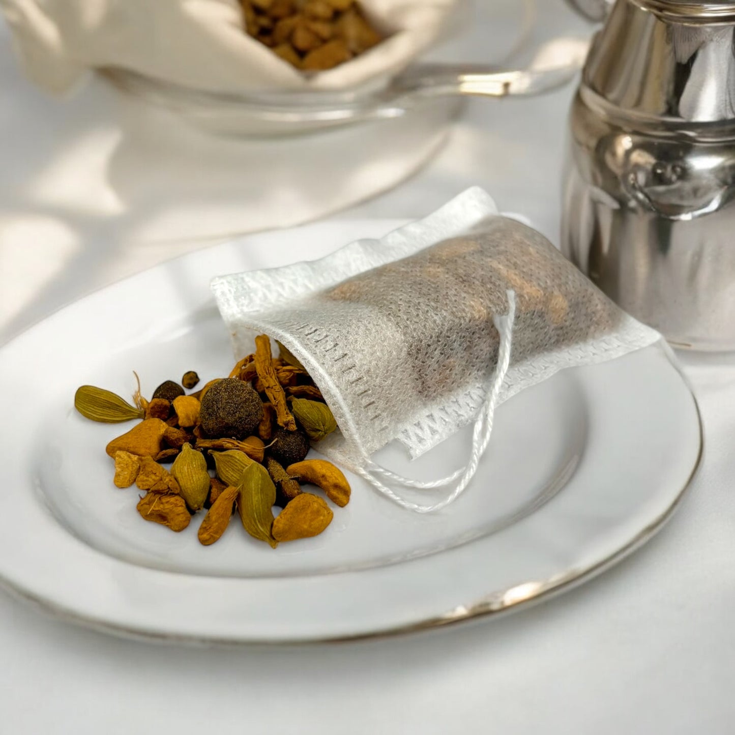 Ingredients: namon, ginger, green cardamom pods, allspice, cloves, black pepperCaffeine free