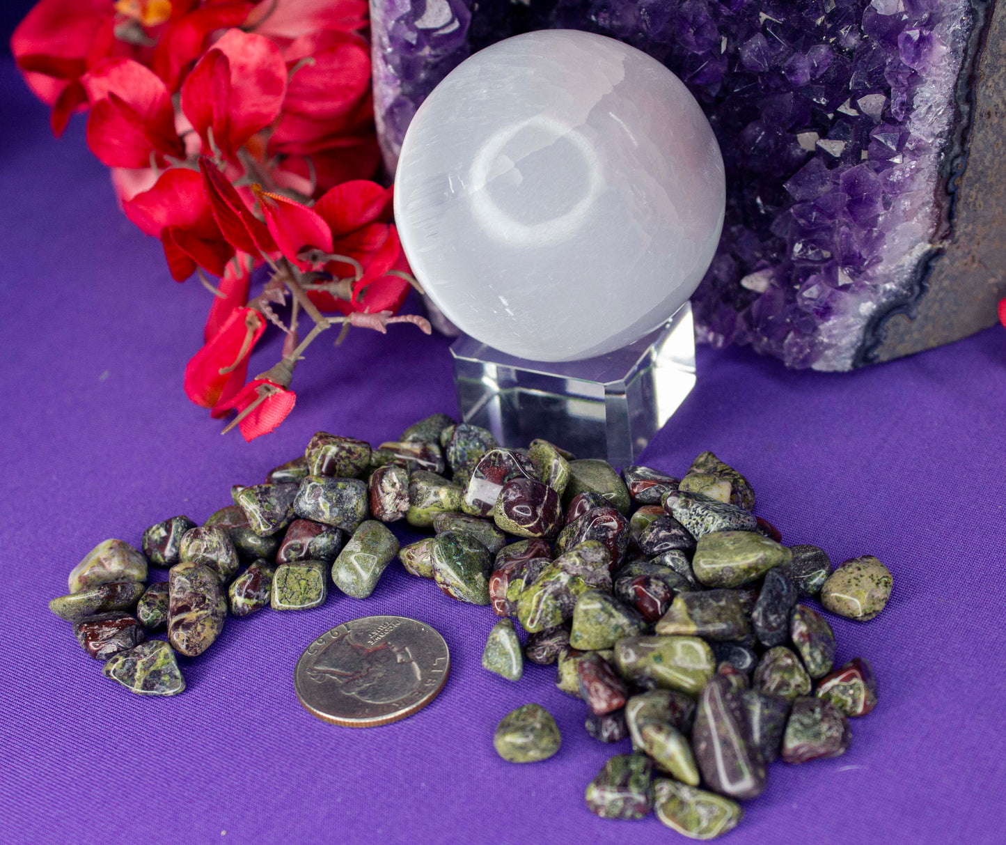 Dragon Stone is a stone that activates and unlocks the heart. Piemontite has been known to strengthen and rejuvenate the heart and heal the emotional body. Its red rays pulsating off a chunk of Epidote enhances the rate at which the heart heals, and aids in a reconnection between the mind, heart, and soul. This important reconnection allows you to speak and feel as one being, and not just scattered feelings and disconnected emotions.