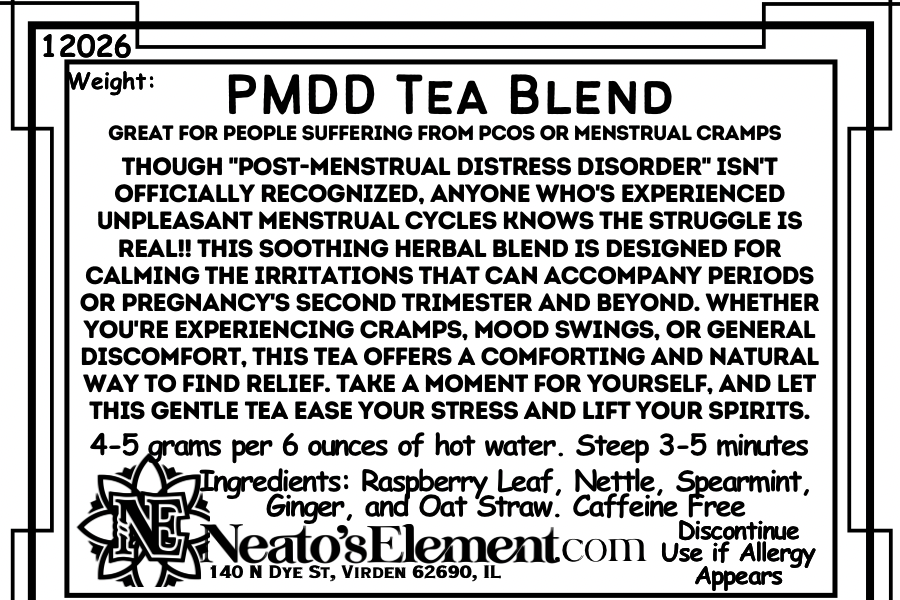 Though "Post-Menstrual Distress Disorder" isn't officially recognized, anyone who's experienced unpleasant menstrual cycles knows the struggle is real!! This soothing herbal blend is designed for calming the irritations that can accompany periods or pregnancy's second trimester and beyond. Whether you're experiencing cramps, mood swings, or general discomfort, this tea offers a comforting and natural way to find relief. Take a moment for yourself, and let this gentle tea ease your stress and lift your spirits.