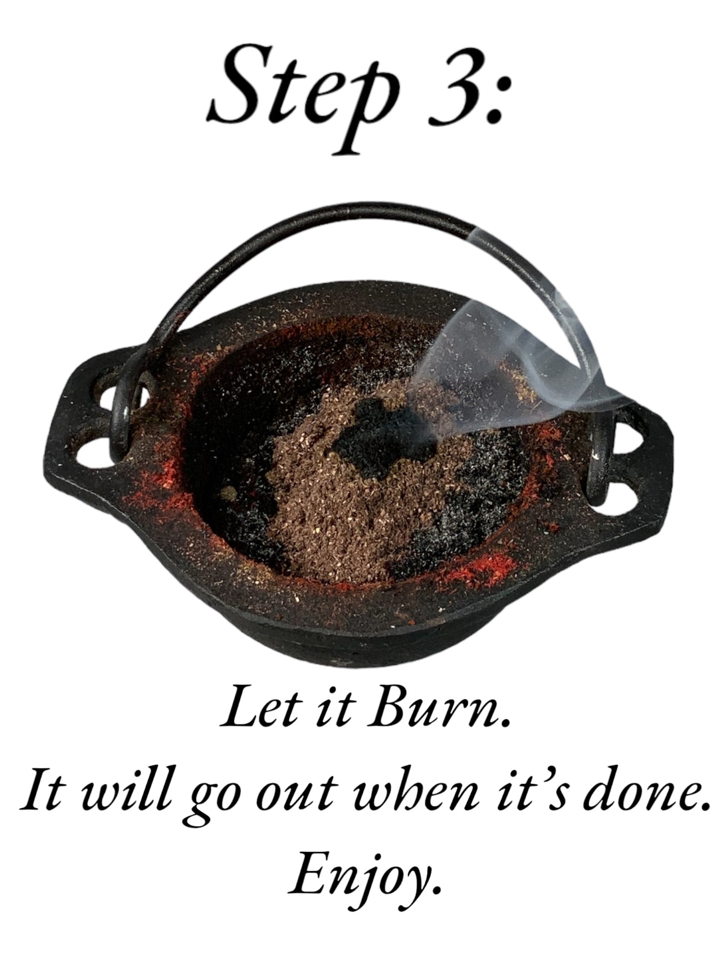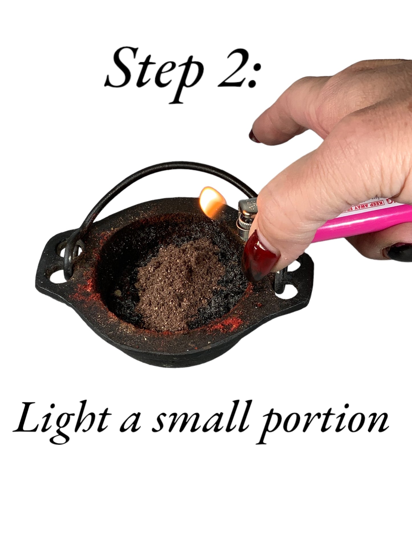 No more hassle with charcoal disks – simply pour a small amount of this enchanting powder into a fire-safe container and light it. Watch as the incense ignites without the need for additional tools, allowing you to bask in the magic that unfolds.