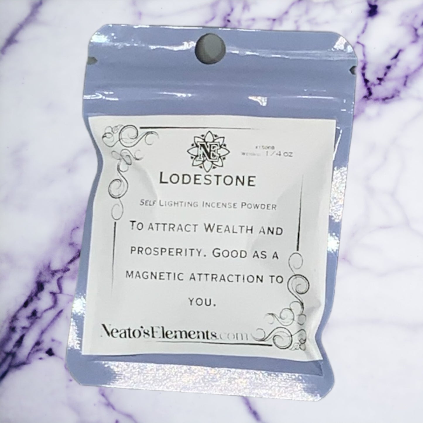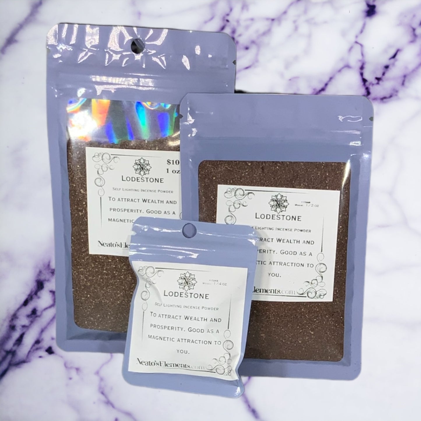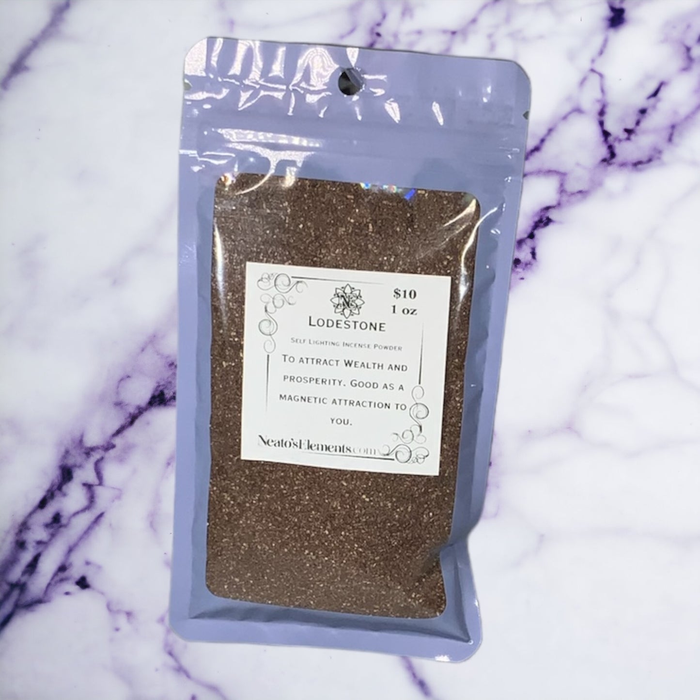 Introducing Lodestone Self-Lighting Incense Powder – your key to attracting wealth, prosperity, or any desire you set your intention on. Unleash the magnetic power of Lodestone, drawing the energies you seek into your life effortlessly.