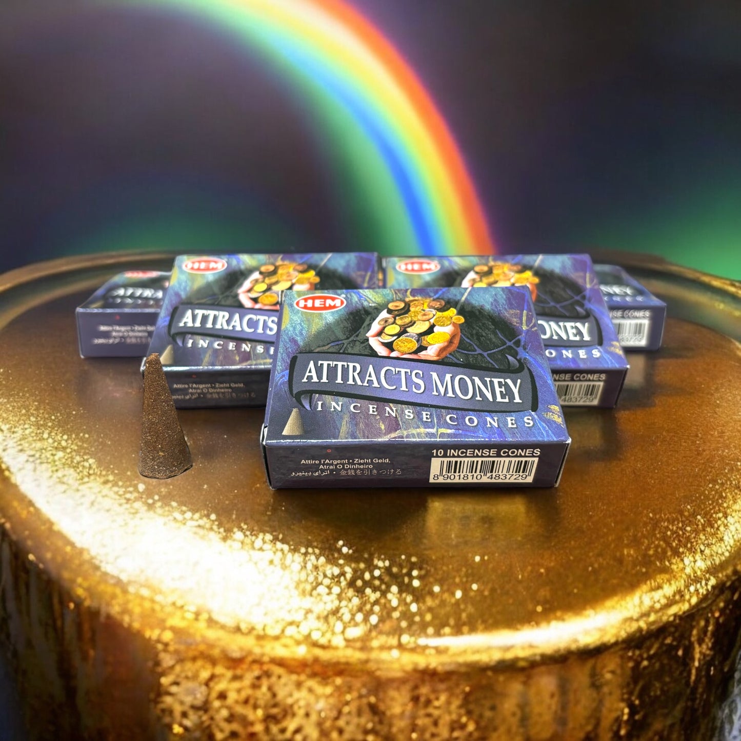 Invite prosperity and abundance into your life with Hem's Attracts Money Cone Incense. Handcrafted in India with meticulous care, these cones are specially formulated to help draw financial success and attract positive energy.