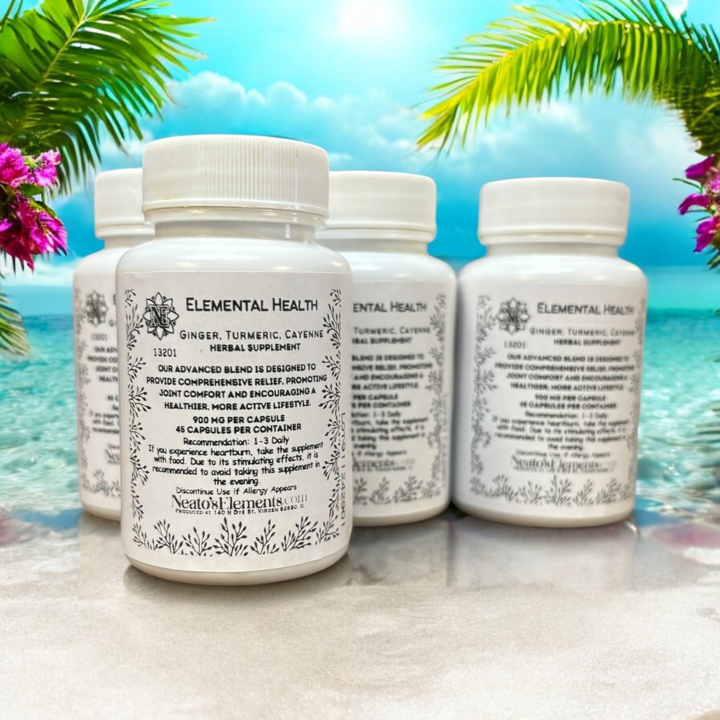 Elemental Health is your go-to solution for natural inflammation support, enhanced energy, and improved circulation, all in one convenient capsule. Elevate your wellness journey with this dynamic trio of nature's finest herbs!