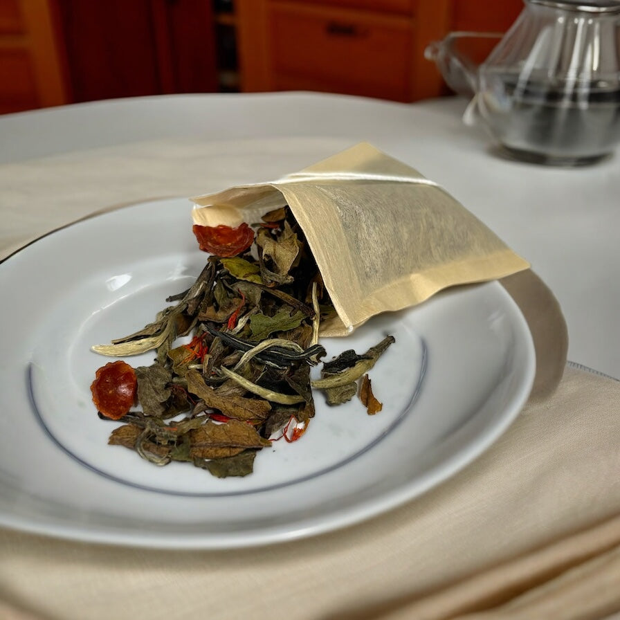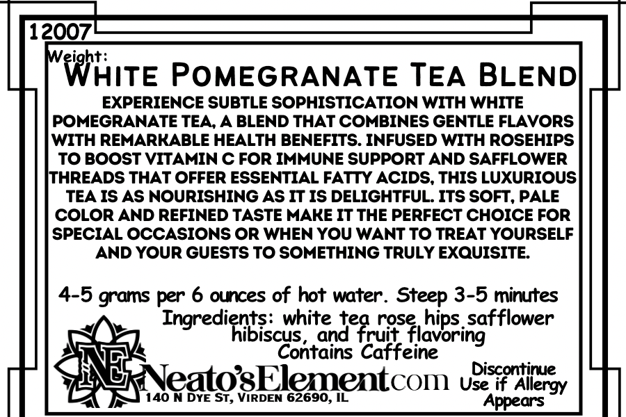Experience subtle sophistication with White Pomegranate Tea, a blend that combines gentle flavors with remarkable health benefits. Infused with rosehips to boost vitamin C for immune support and safflower threads that offer essential fatty acids, this luxurious tea is as nourishing as it is delightful. Its soft, pale color and refined taste make it the perfect choice for special occasions or when you want to treat yourself and your guests to something truly exquisite.