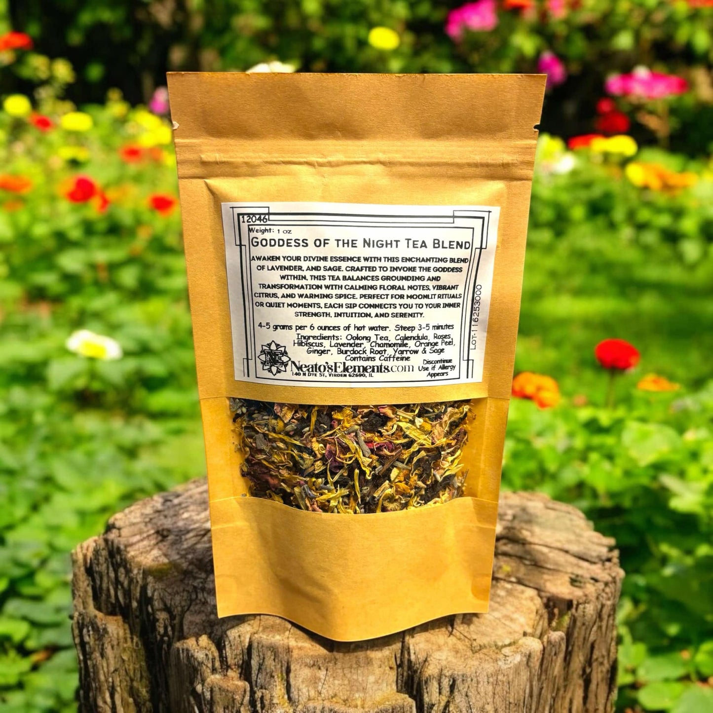 Awaken your divine essence with this enchanting blend of lavender, and sage. Crafted to invoke the goddess within, this tea balances grounding and transformation with calming floral notes, vibrant citrus, and warming spice. Perfect for moonlit rituals or quiet moments, each sip connects you to your inner strength, intuition, and serenity.