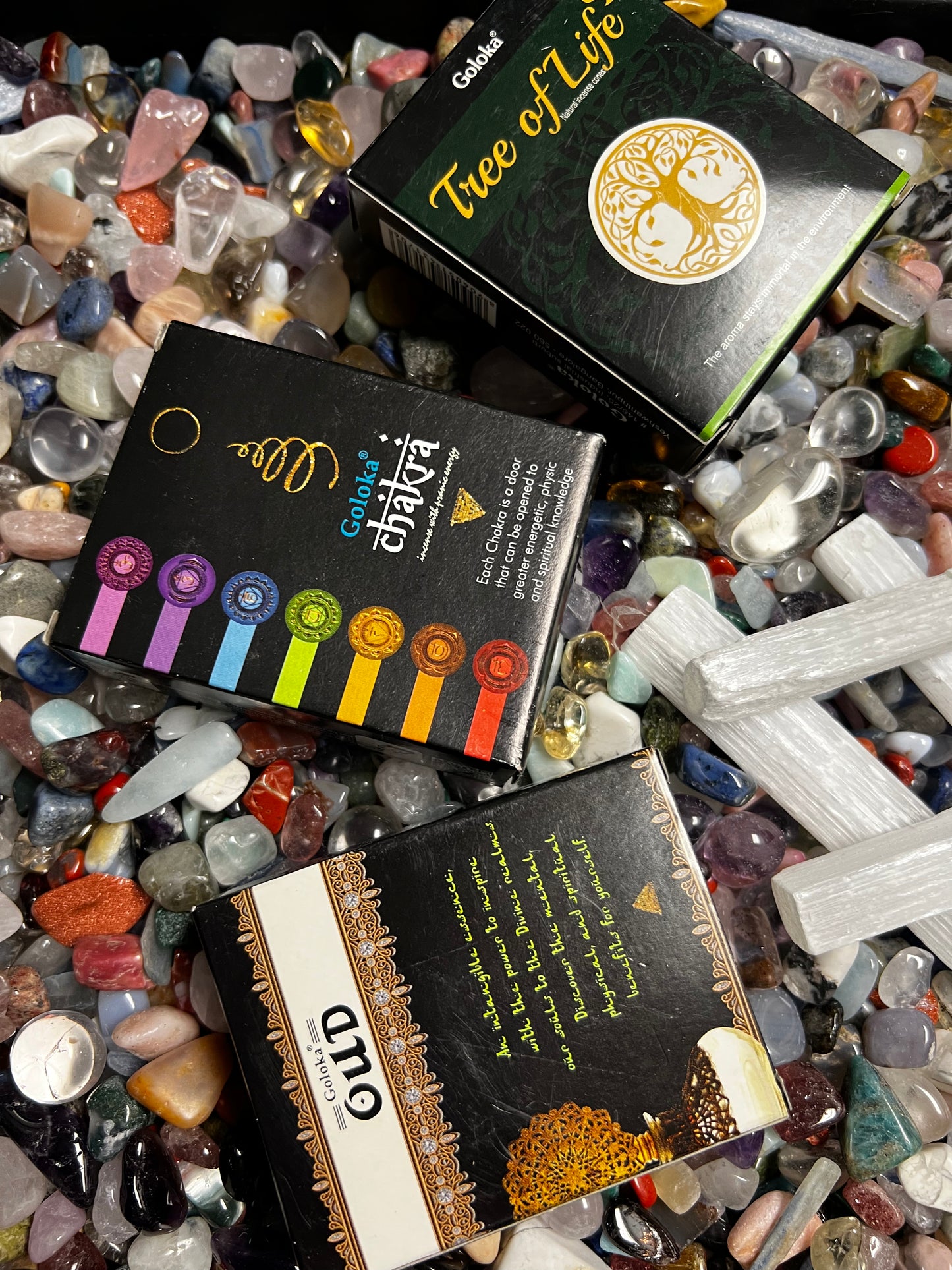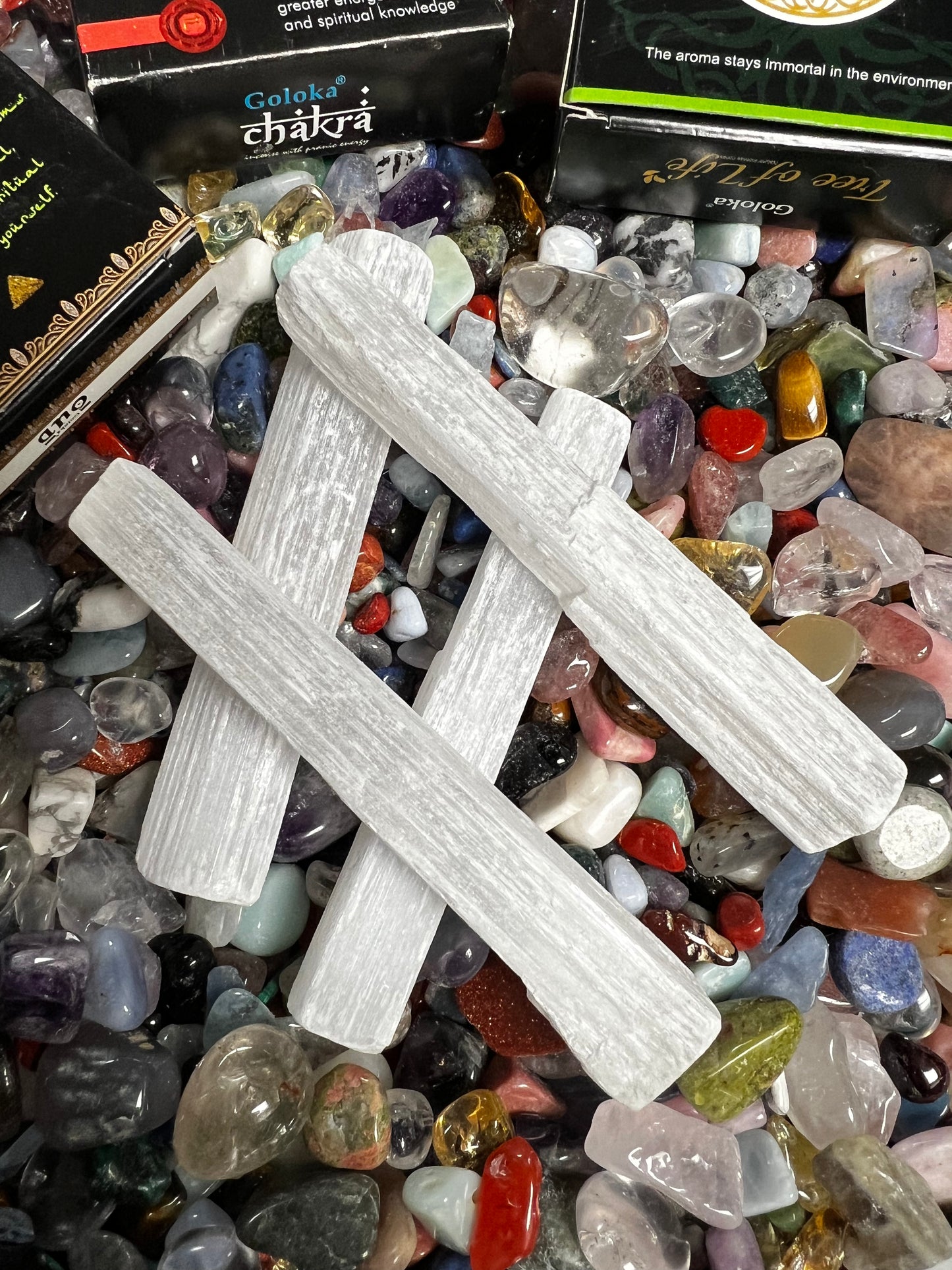 Upgrade your scoop to include a small selenite grid and/or boxed cone incense (incense is an intuitively chosen box), with explanation of use.