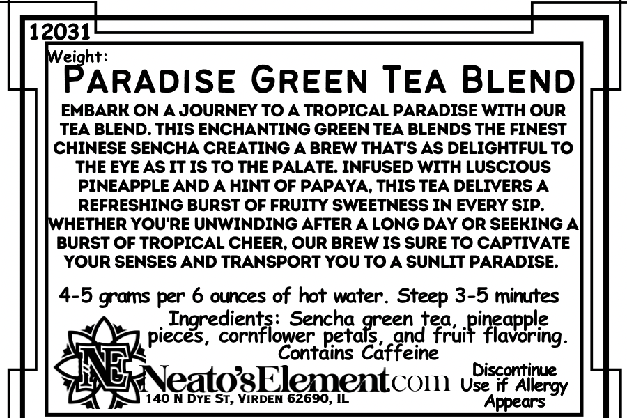 Embark on a journey to a tropical paradise with our tea blend. This enchanting green tea blends the finest Chinese Sencha creating a brew that's as delightful to the eye as it is to the palate. Infused with luscious pineapple and a hint of papaya, this tea delivers a refreshing burst of fruity sweetness in every sip. Whether you're unwinding after a long day or seeking a burst of tropical cheer, our brew is sure to captivate your senses and transport you to a sunlit paradise.