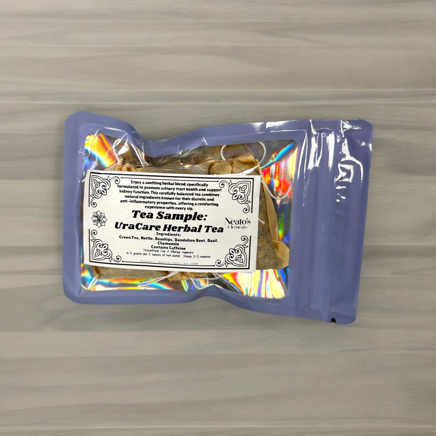 - 3 - UraCare Herbal Tea Bags. (Ingredients: Green Tea, Nettle, Rosehips, Dandelion Root, Basil, Chamomile. Contains Caffeine)