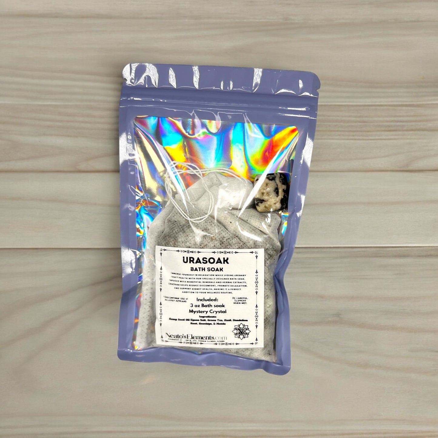 - 1 - UraSoak Bath Soak, 3 oz. (Ingredients: Hemp Seed Oil Epson Salt, Green Tea, Basil, Dandelion Root, Rose hips, & Nettle)